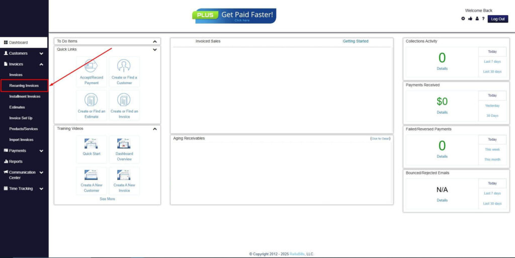 Creating a New Recurring Invoice using ReliaBills involves the following steps: